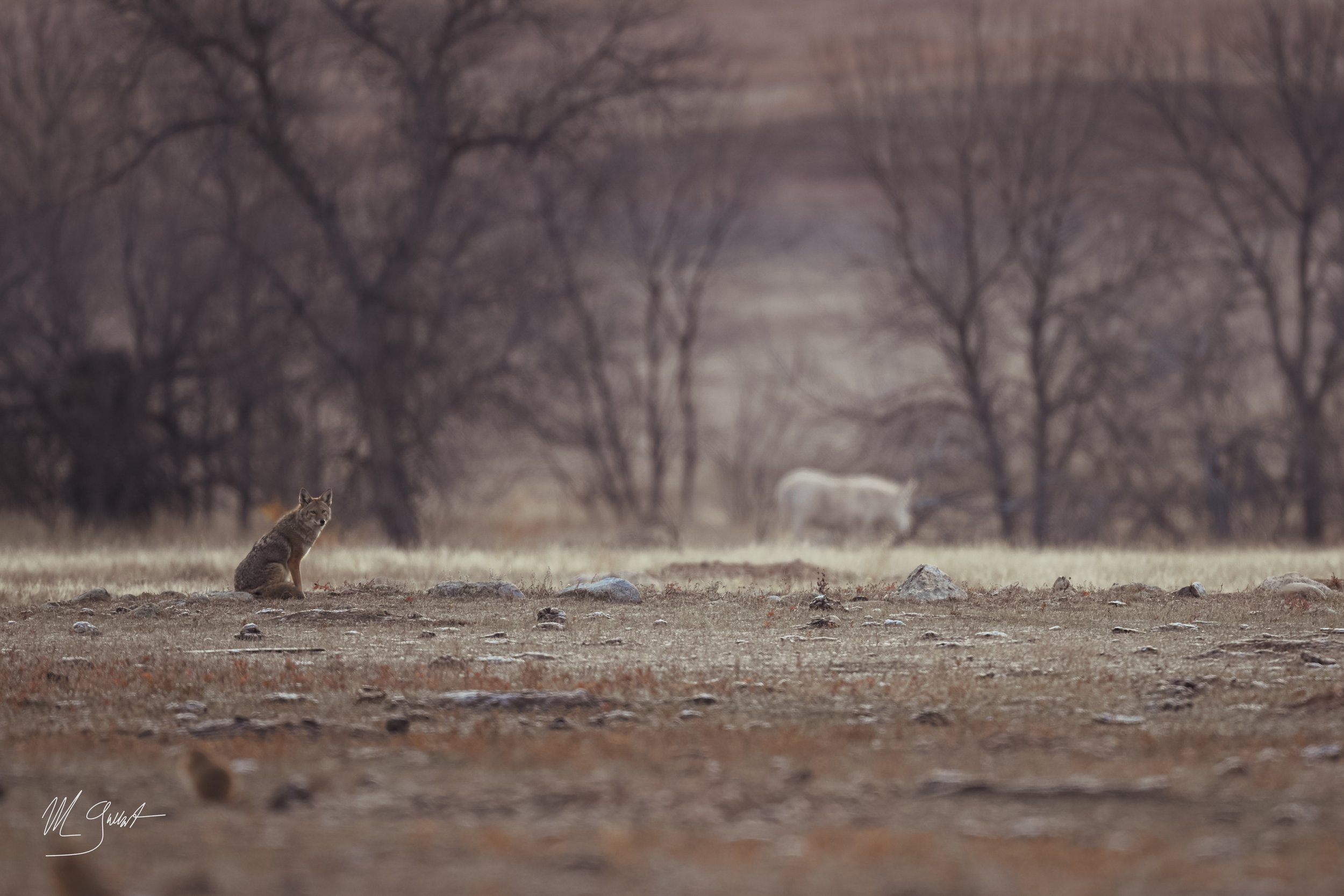 We quickly realized that in between us and the feral asses was a coyote, on the hunt for a morning hot (prairie) dog snack. But wait, that’s not all — he had an unlikely friend!